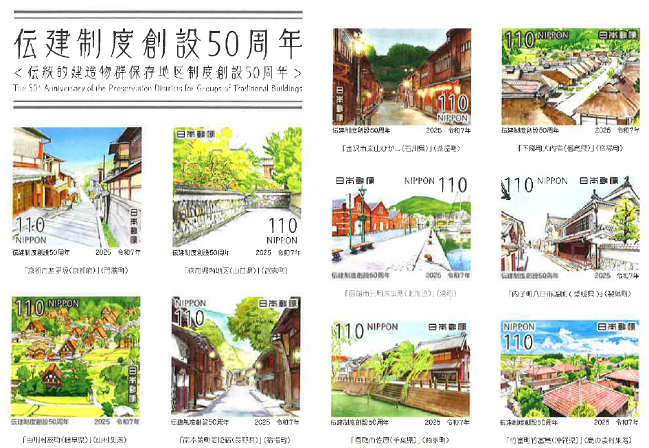 今日、家内が郵便局で記念切手を買ってきてくれました。なんと「伝建制度創設50周年」の切手です。